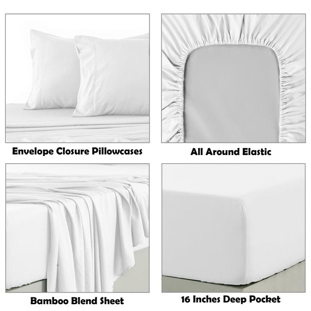 - PACKAGE INCLUDE: Our 4 Piece Bamboo Blend Sheet Set includes 1 flat sheet, 1 fitted sheet and 2 pillowcases (Twin & Twin XL come with 1 Pillowcase)