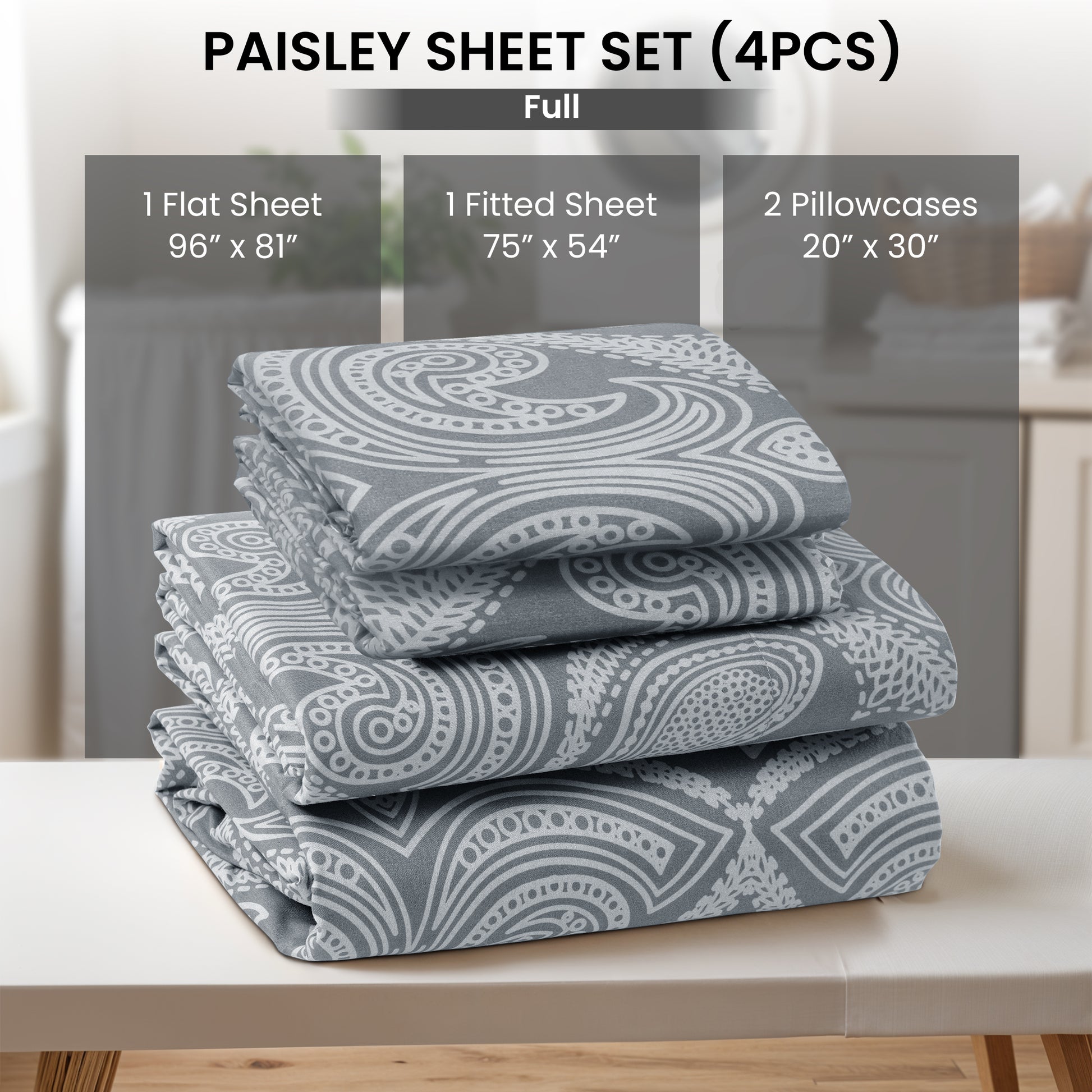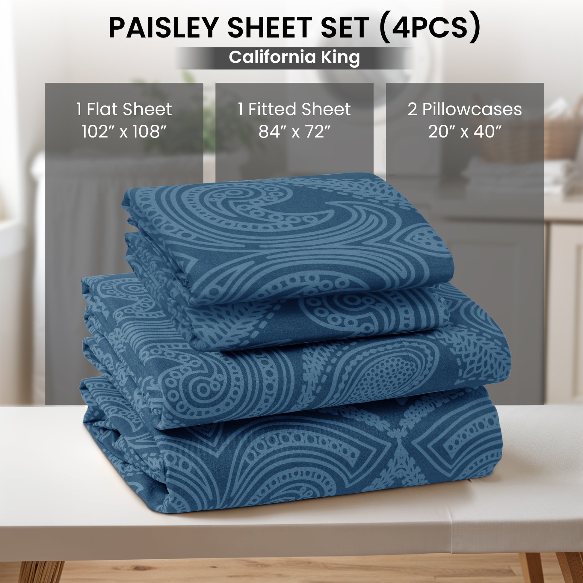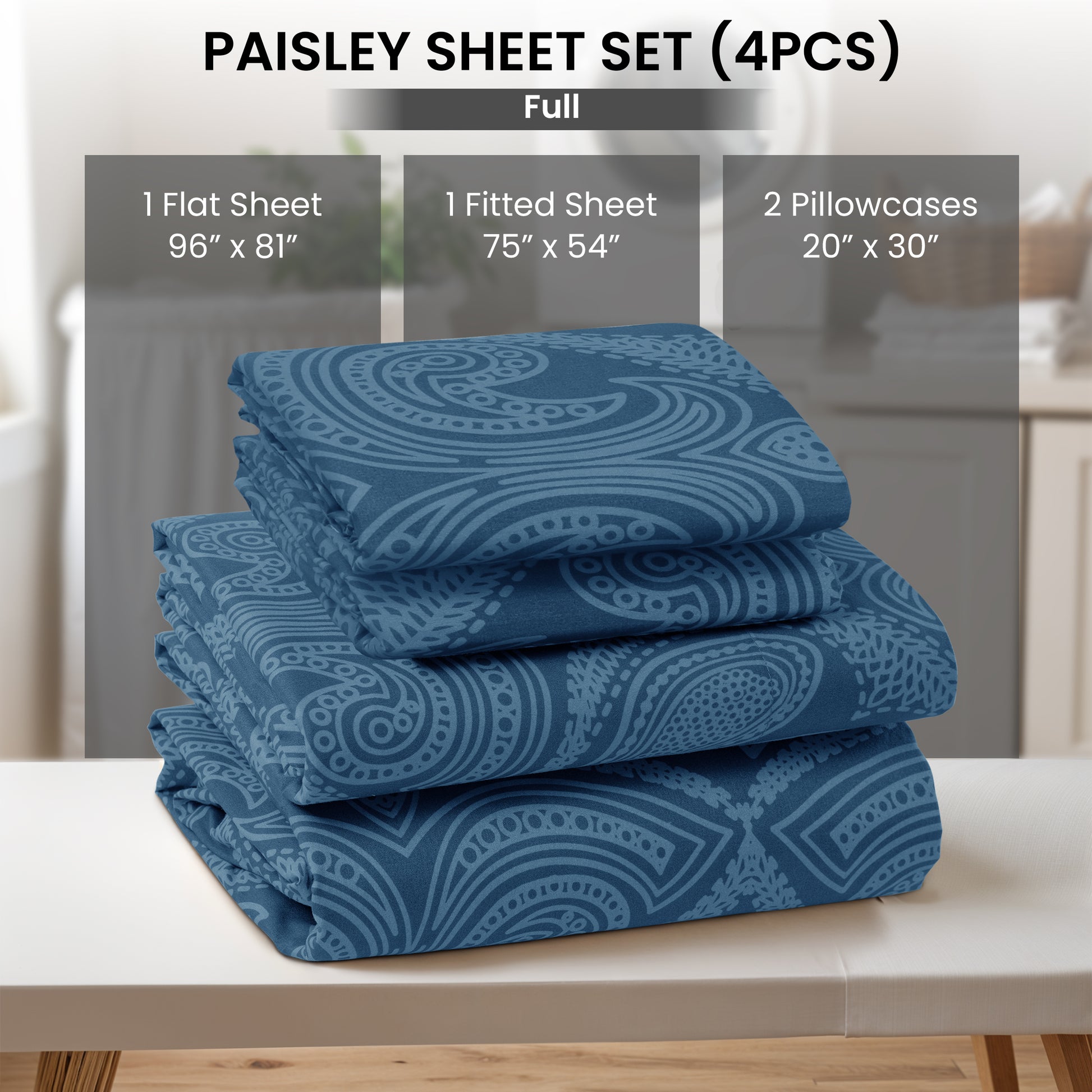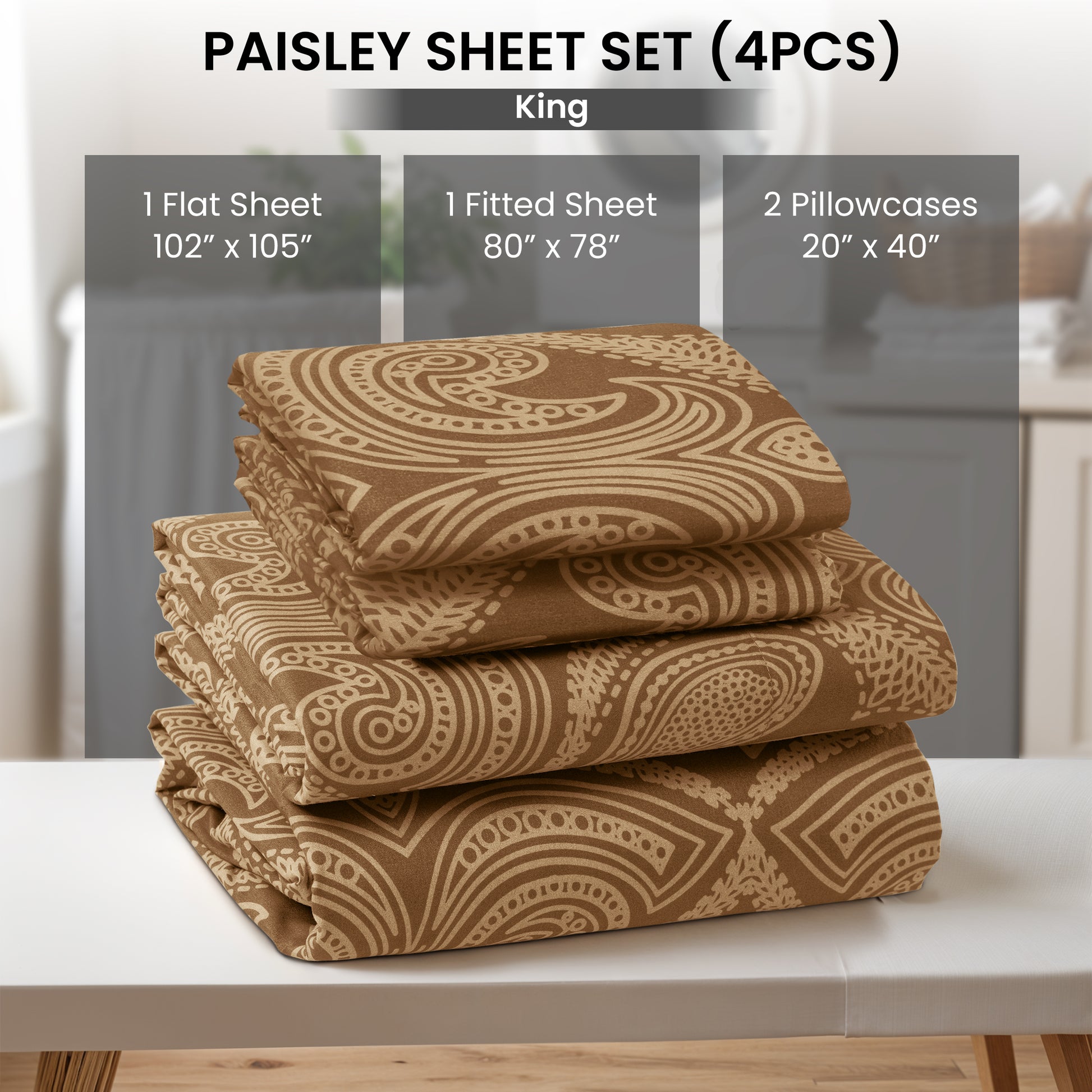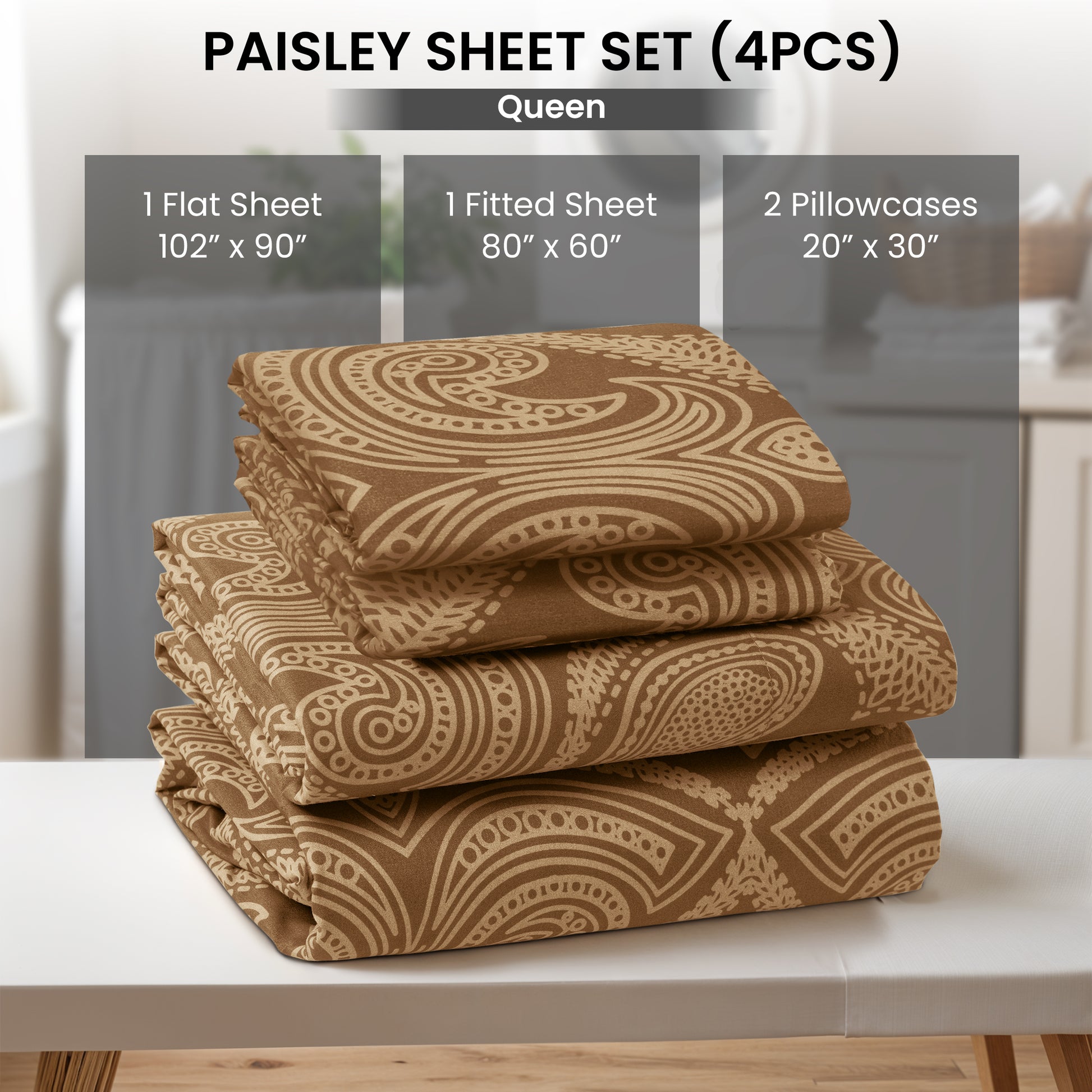 4-Piece Paisley Print Deep Pocket Bed Sheets Set