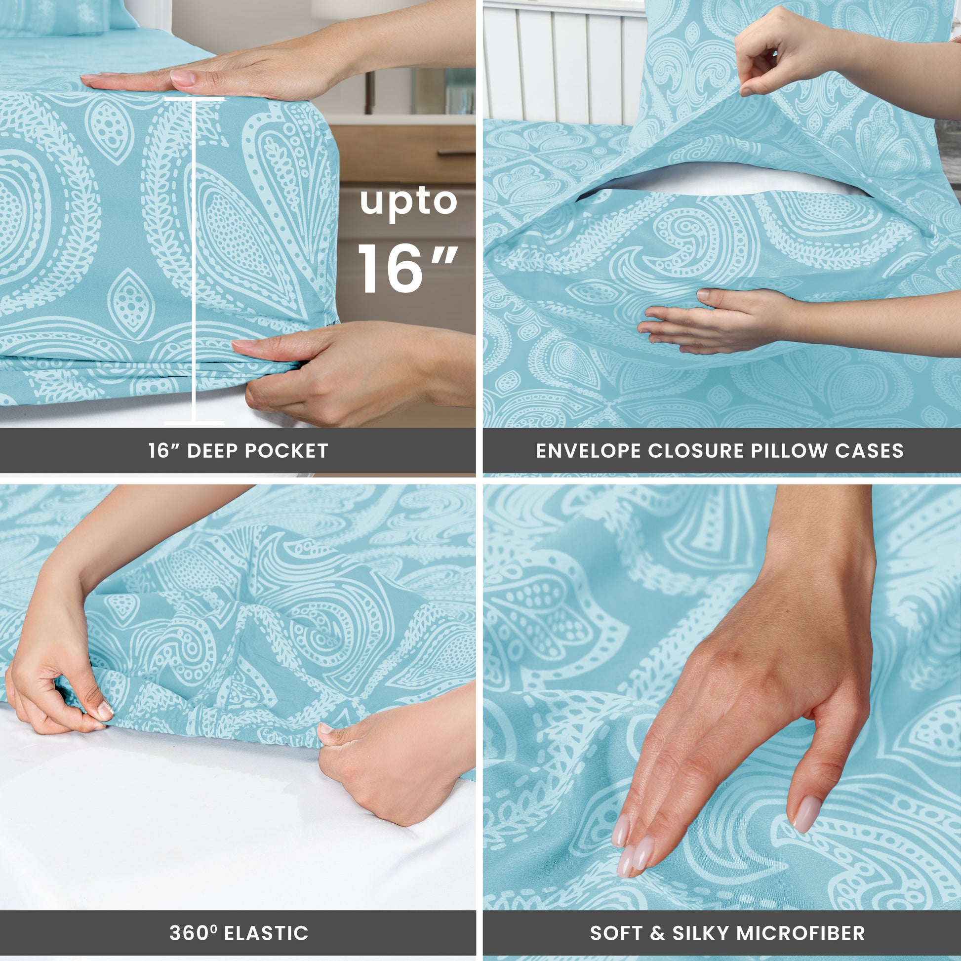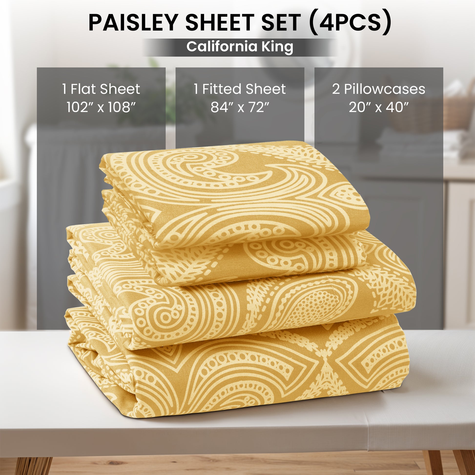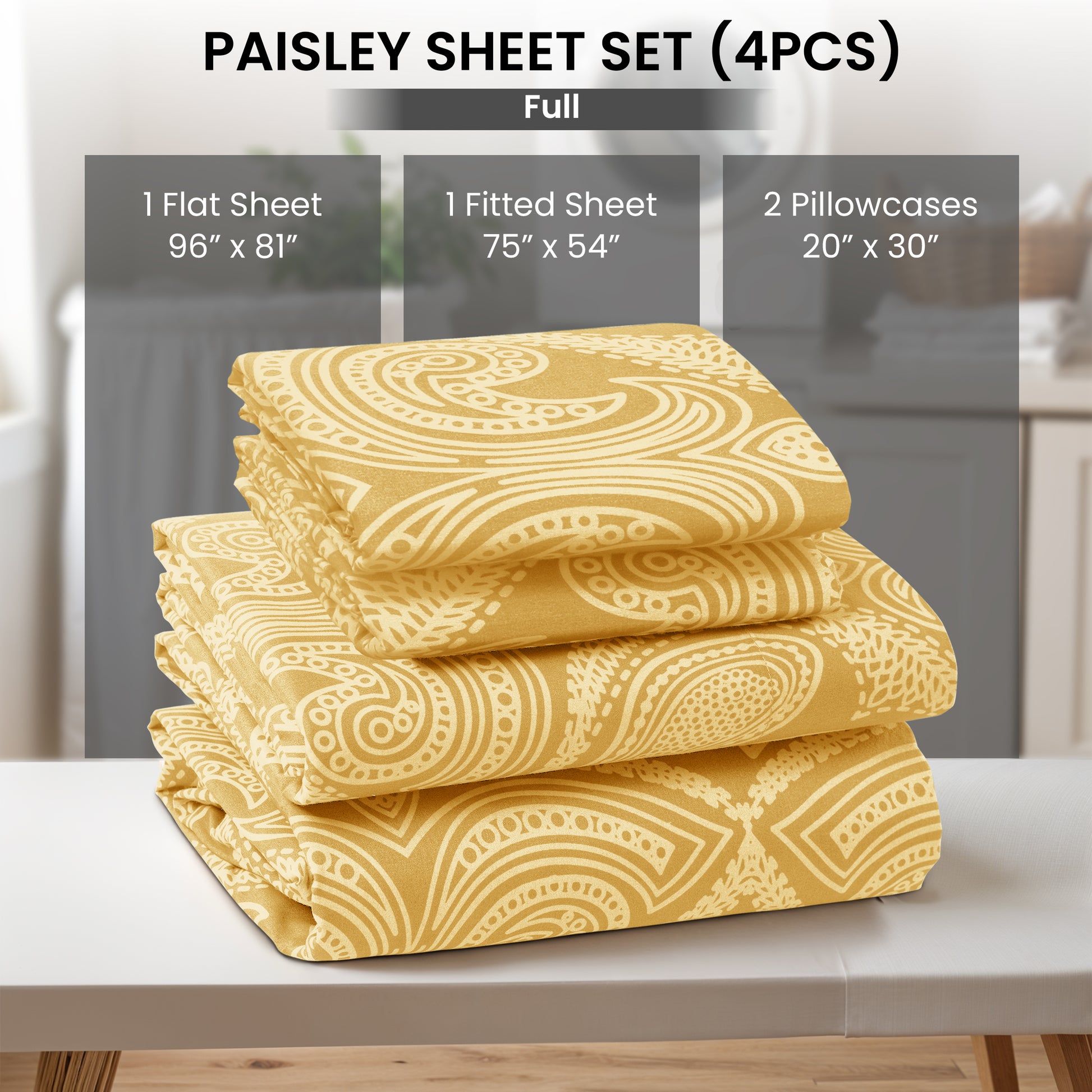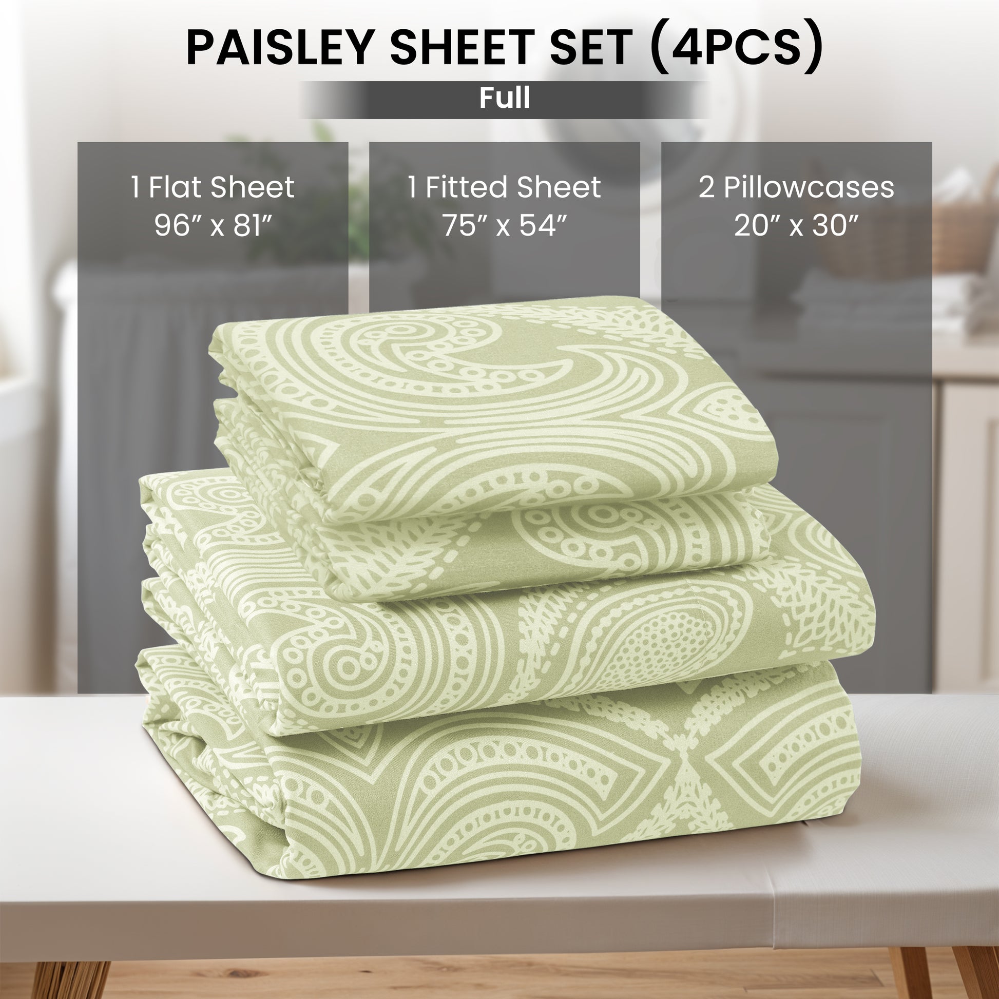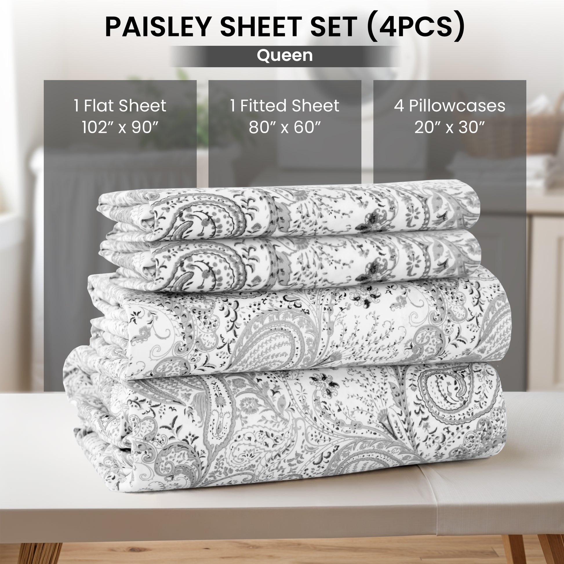 4-Piece Paisley Print Deep Pocket Bed Sheets Set