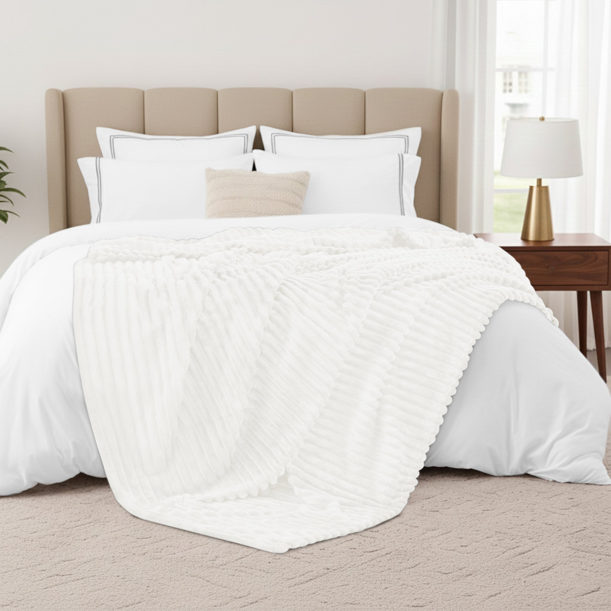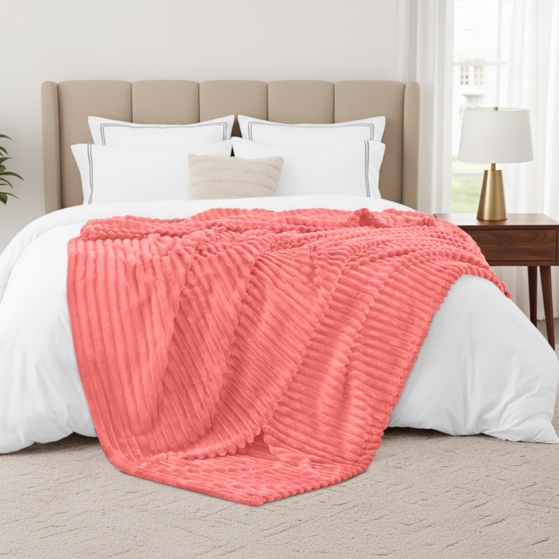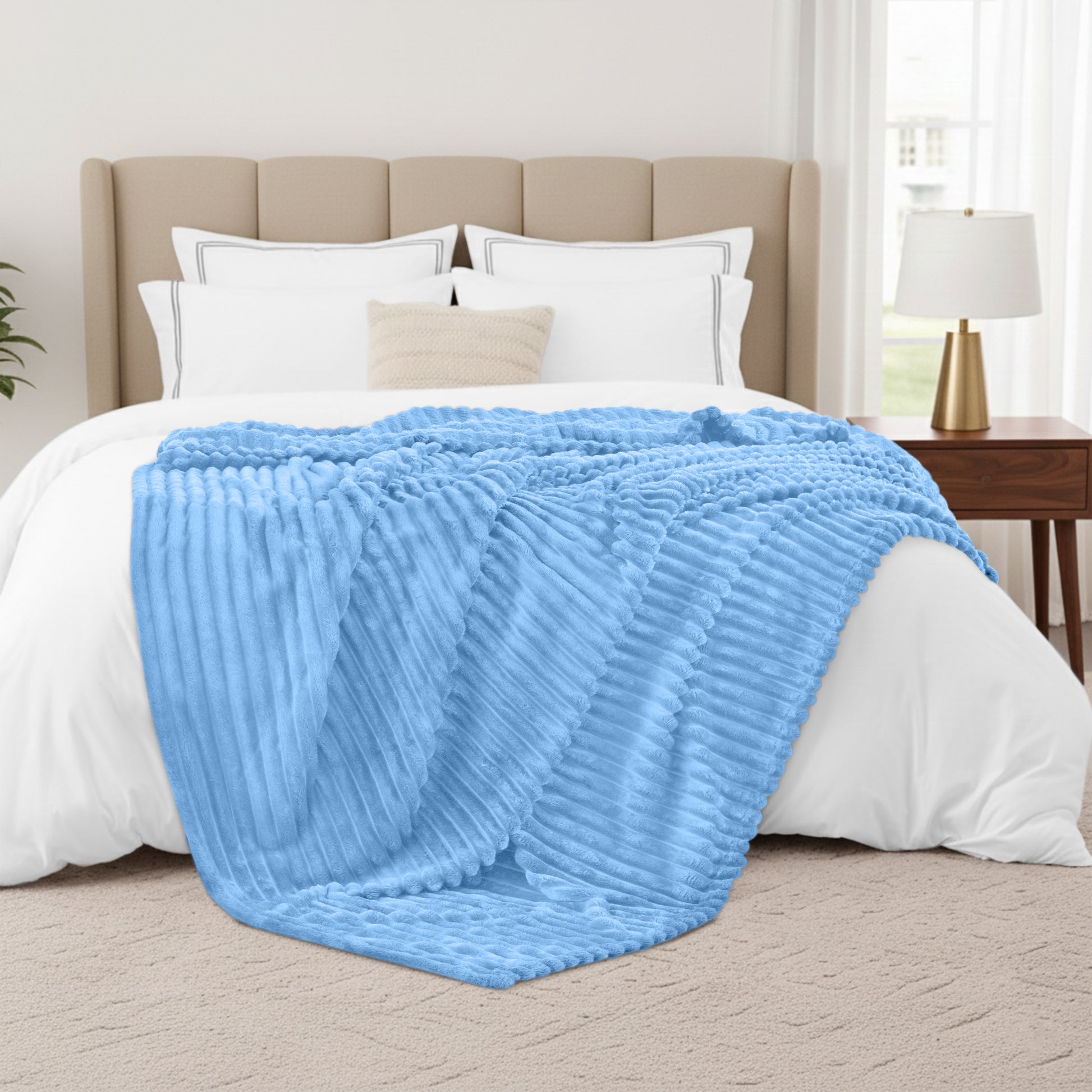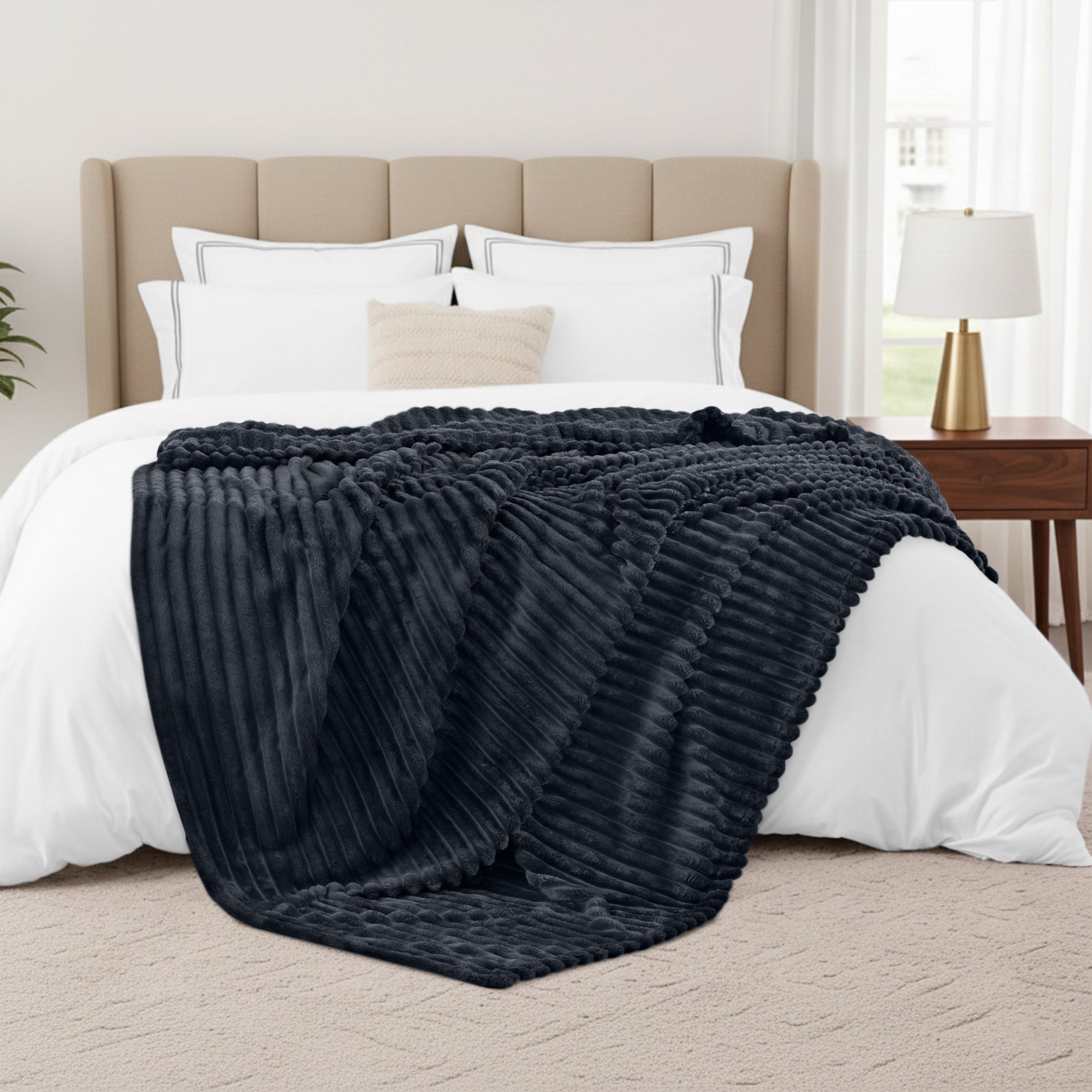 Unlike plain blankets, this collection features a subtle, elegant 3cm stripe design that adds texture to your space. It looks as good draped over a ladder rack as it does spread across your bed. Whether you are curling up for a movie night, adding an extra layer of warmth to your duvet, or looking for the perfect accent piece for your living room, this fleece blanket delivers immediate comfort.