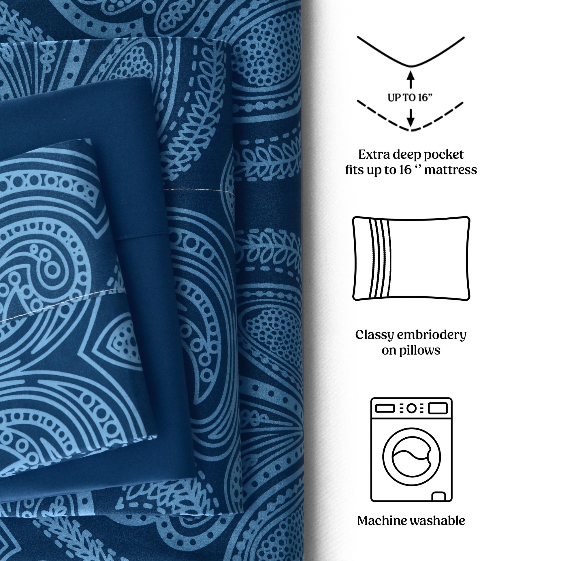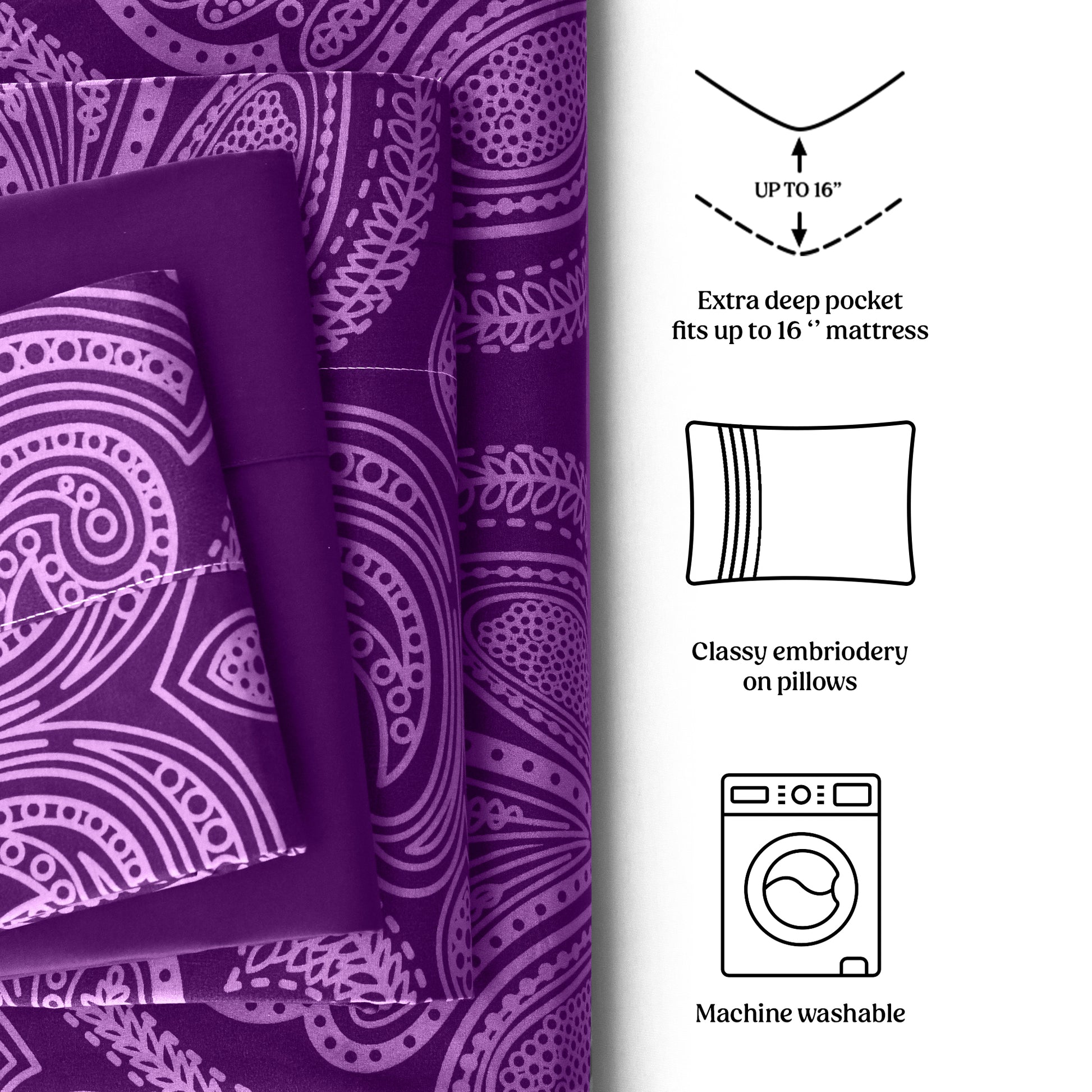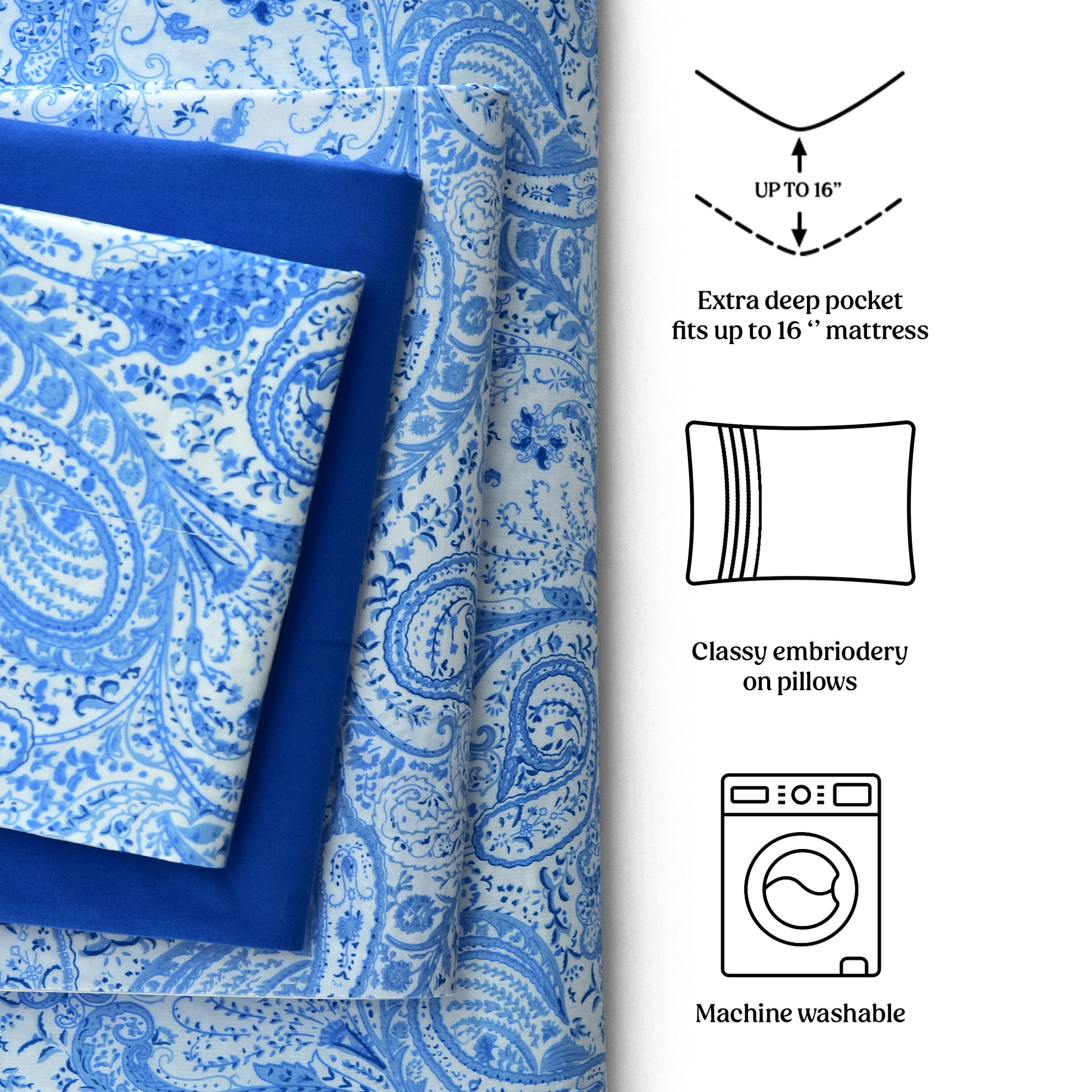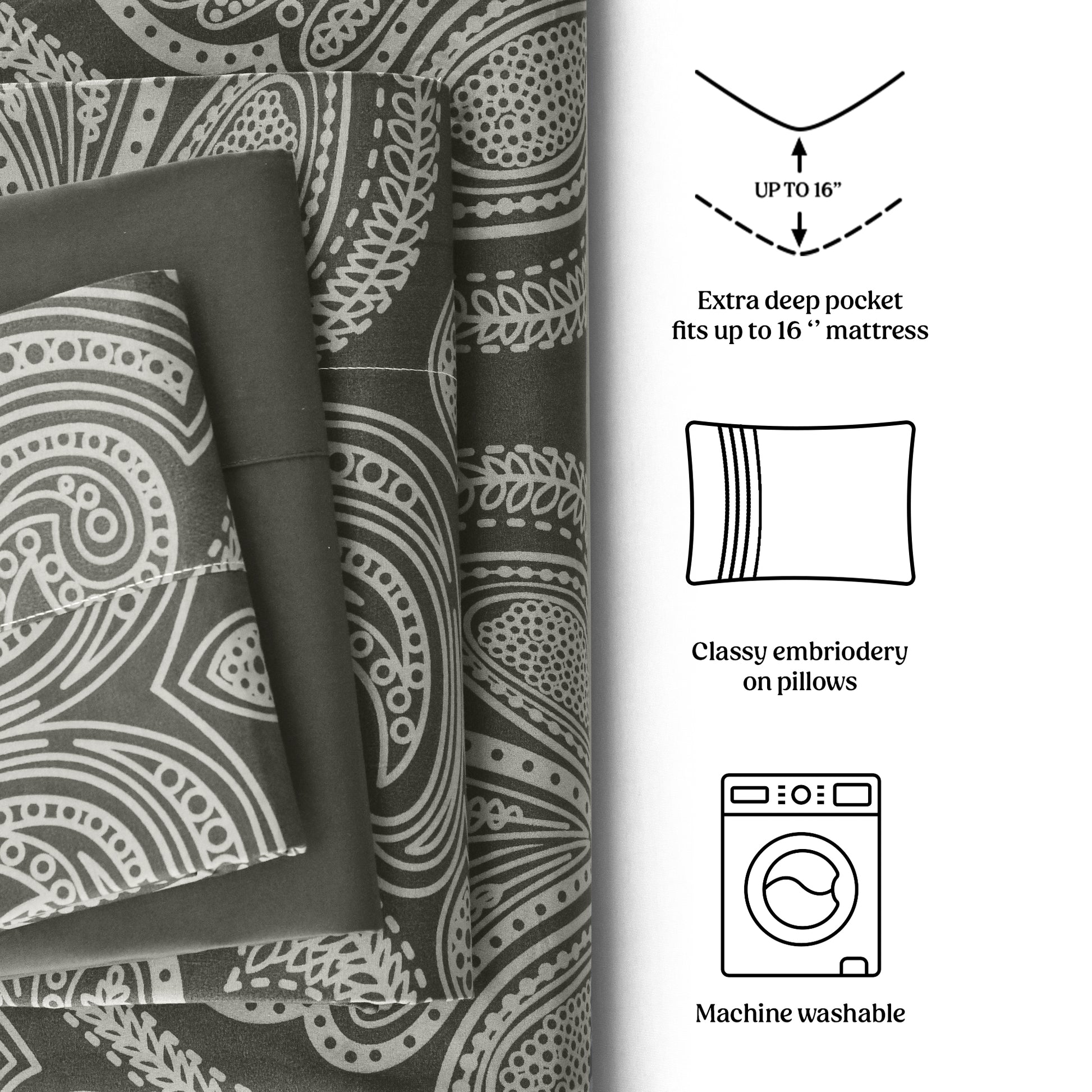 6-Piece Paisley Print Deep Pocket Bed Sheets Set