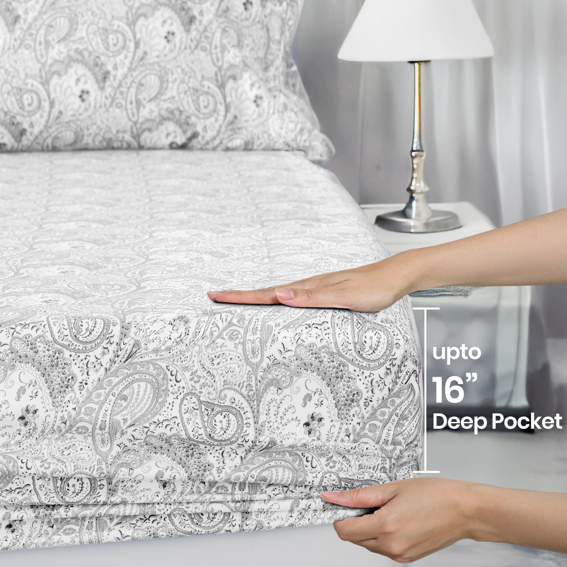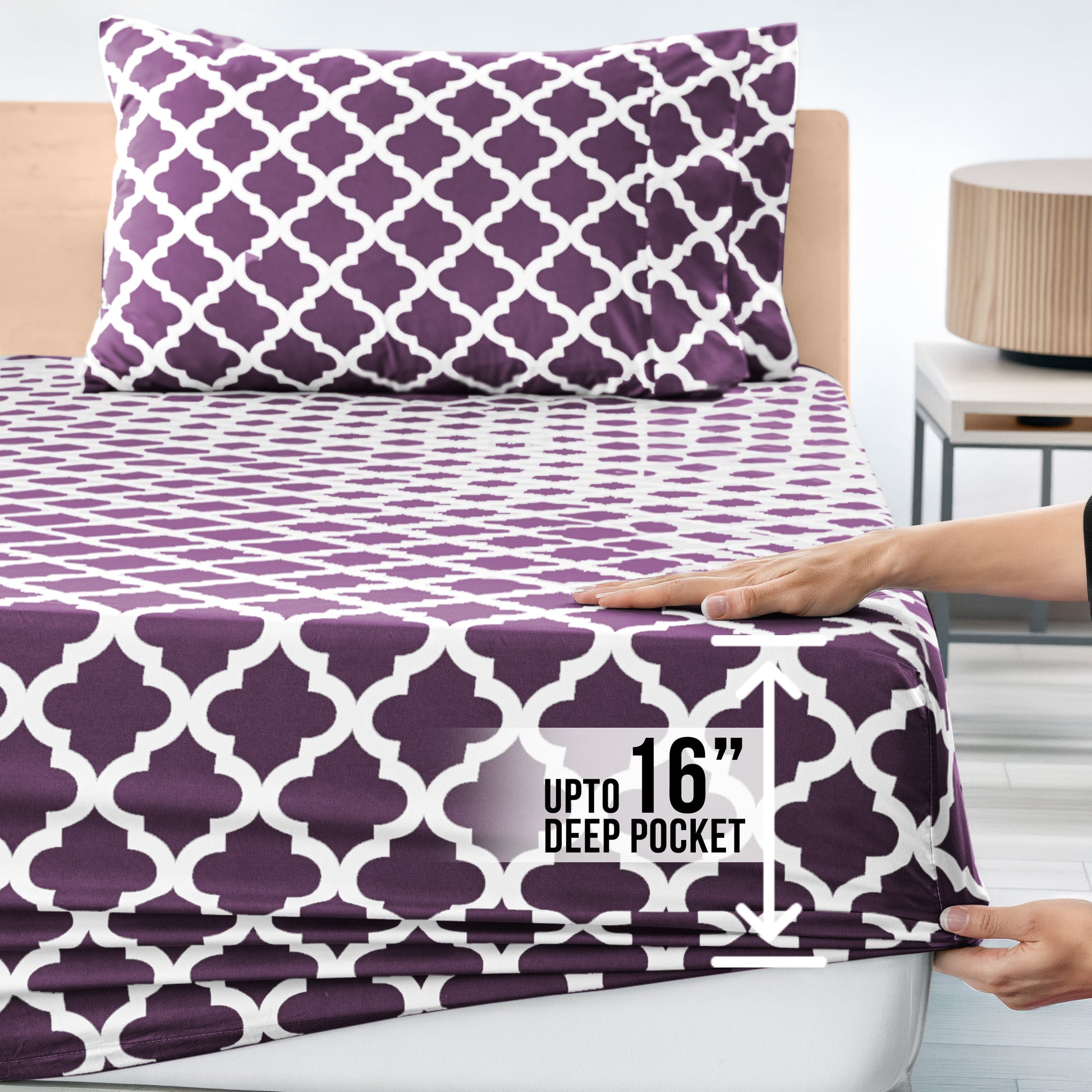 - Choose from a variety of sheet patterns, Plain, Stripe, Paisley, Floral, or Quatrefoil to match any bedroom style.