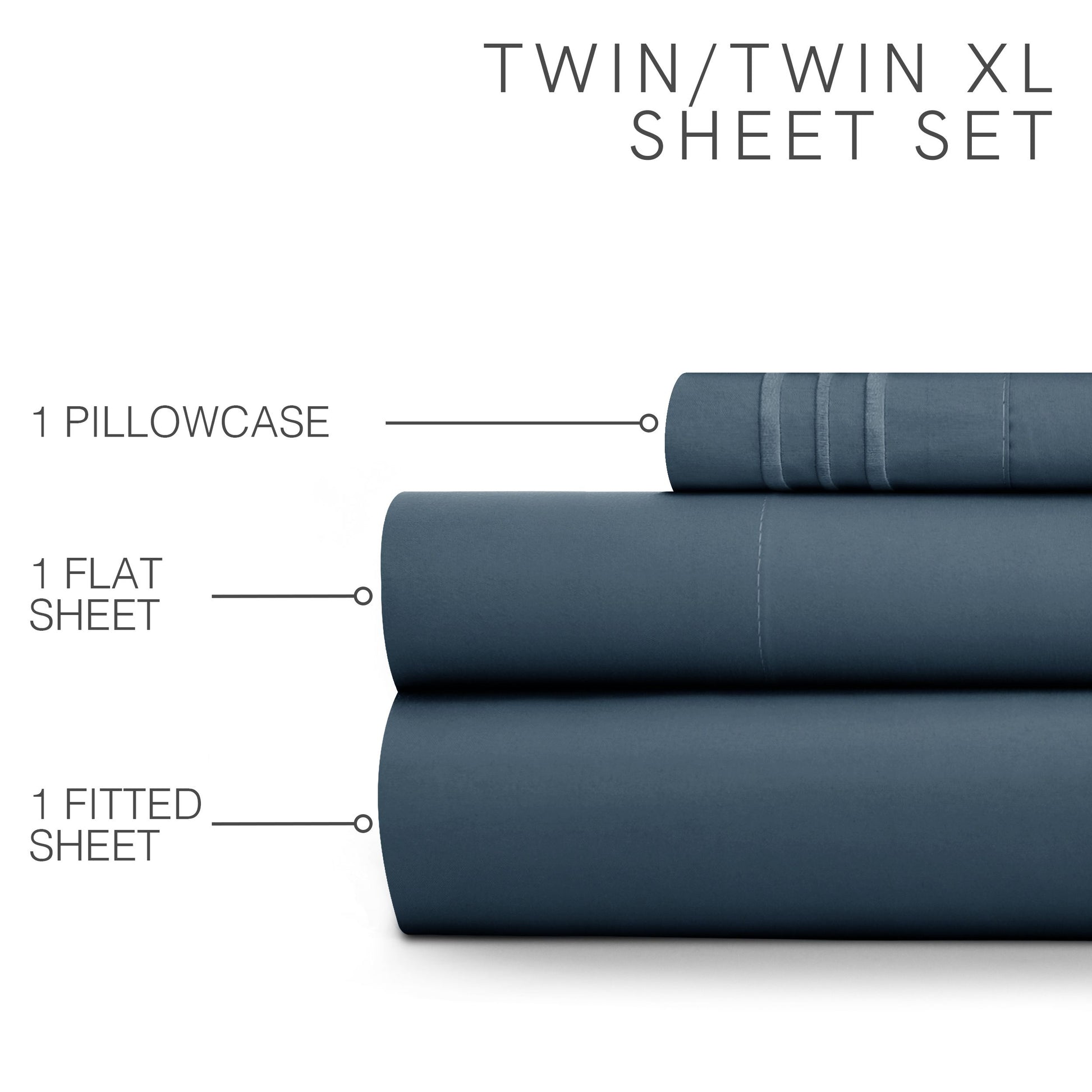 Twin XL Size Set Includes: 1 Twin XL Fitted Sheet: 39" W x 80" L 1 Twin XL Flat Sheet: 66" W x 102" L 1 Standard Pillowcase: 20" W x 30" L |